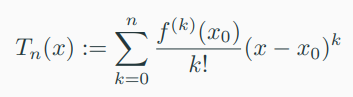 -> The Taylor polynominal of degree \(n\) of \(f\) : \( R \rightarrow R \) at \( x_{0} \) is defined as