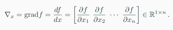 -> \( f : R^n \rightarrow R \) of \( x \in R^n \), the partial derivatives as